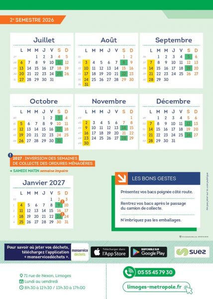 Les bacs verts (déchets ménagers) sont collectés les samedis matins en semaine paire